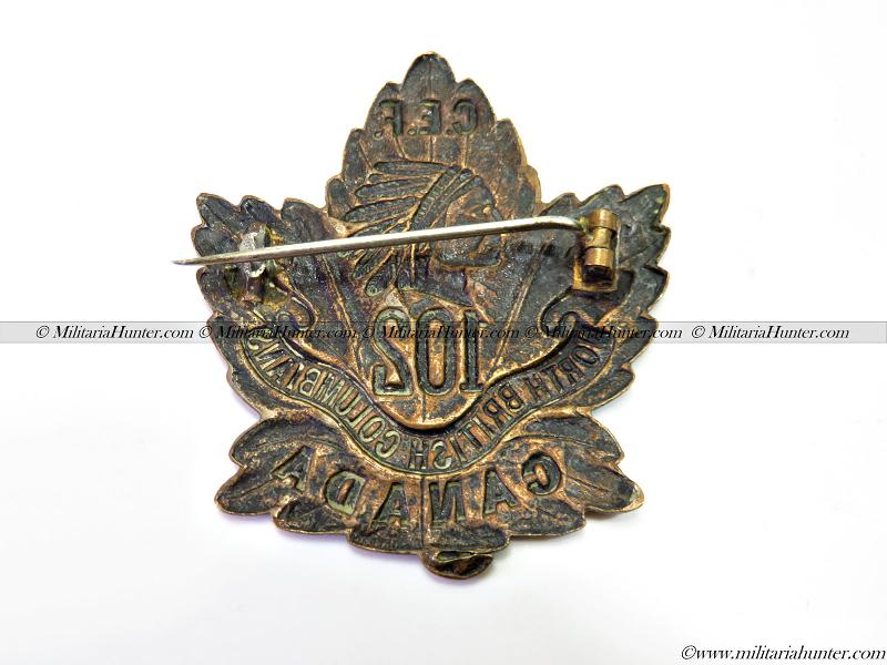 ww1 CEF 102nd Battalion cap badge North British Columbian