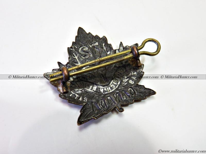 WW1 CEF 72nd Battalion Seaforth Highlanders of Canada collar badge