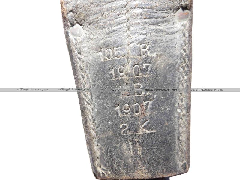 Trouvée montée avec un porte baïonnette S98 réceptionné au BA XIX en 1906, et bien marquée au JR105 en 1907.