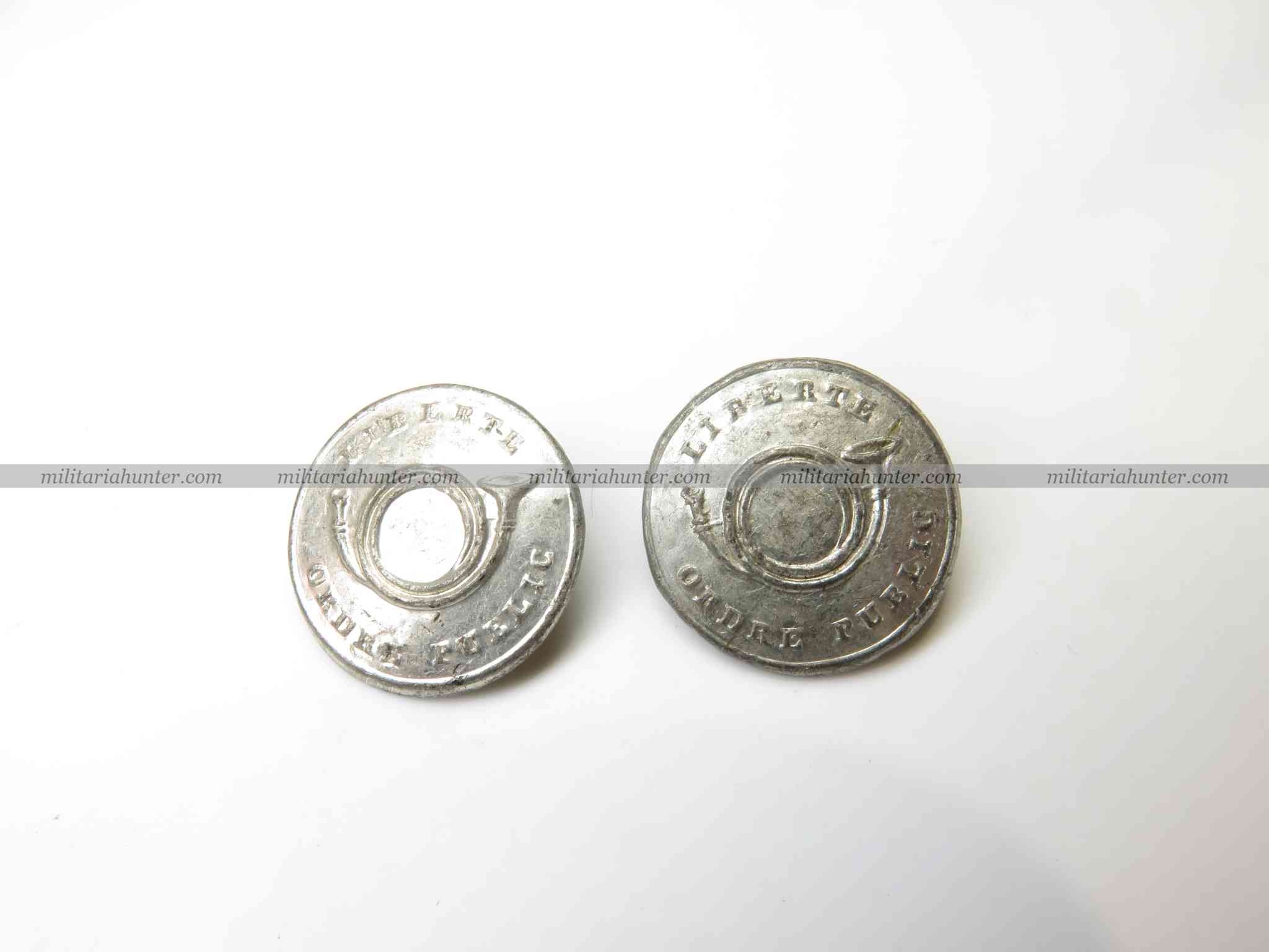 Bouton de la Garde Nationale Sédentaire, modèle 1848 - 2nde République. Gros module 21,5 mm fabricant H.T.&S. Birmingham Prix pour 1[...]-Lire la suite.
